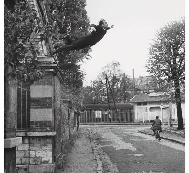 Uwielbiam to zdjęcie. Zrobiono je w 1960 roku więc trochę lat już ma. Artysta Yves Kline rzuca się w pustkę. Choć mi kojarzy się bardziej ze skokiem w nieznane. Głowa wysoko uniesiona, nie patrzy w dół. Odważnie! Jak dziecko, które pierwszy raz skacze do wody.